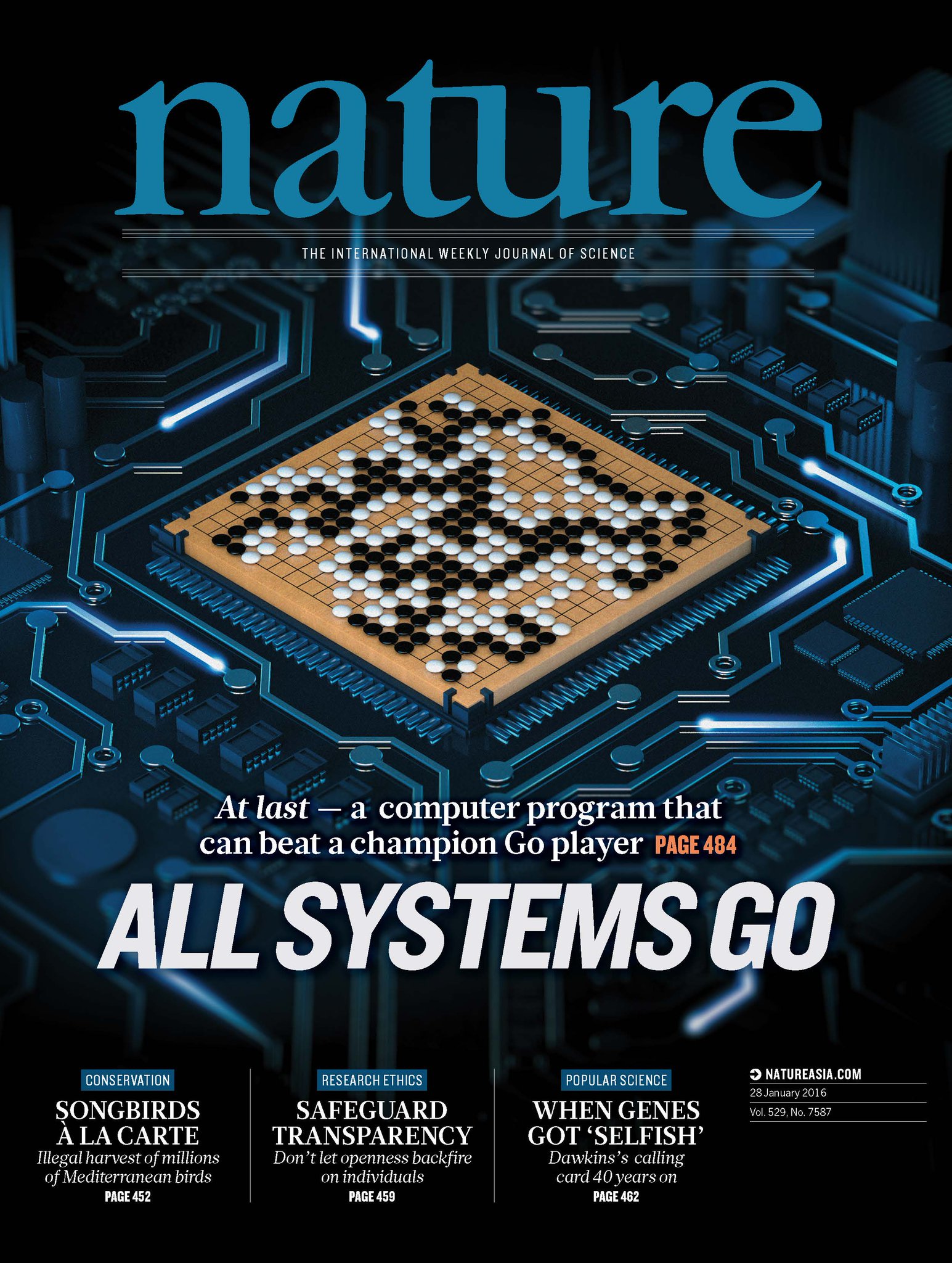 AlphaGo on front cover of NatureAlphaGo’s victory made the front cover of the latest issue of Nature.  (Image: pbs.twimg.com)